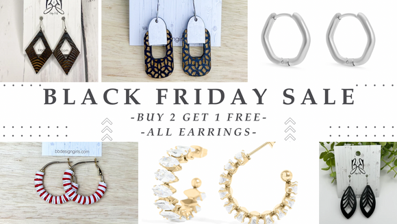 BLACK FRIDAY SALE HAPPENING NOW!! BUY 2 GET 1 FREE ALL EARRINGS!!